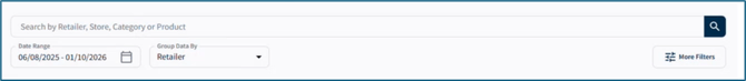 Click More Filters to further limit the data shown by Retailer, Store, Category, Product and Date Type. You can also use the Sort By fields to organize the table by a specific column.