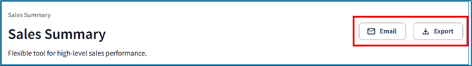 Send the data shown in the table with or without filters as an email by clicking the Email button in the top right corner of the screen. If you’d like to download the data as a CSV file, click Export: