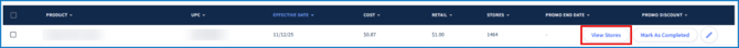 To view which stores are associated with a given request, hover over a row and selectin View Stores: ![]()