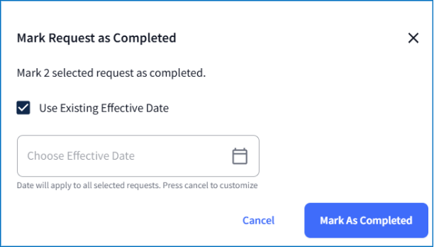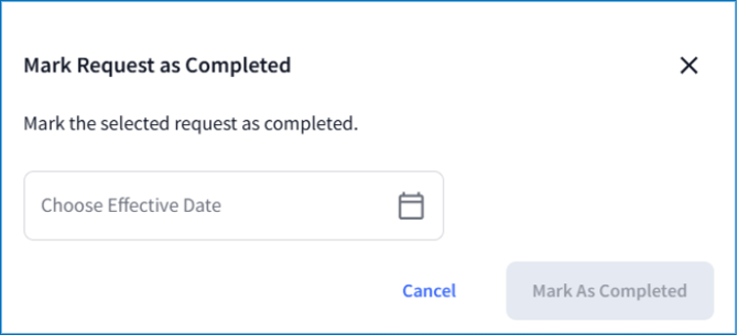 The effective date for a request can be updated even after the request is marked as completed. To make changes after completion: