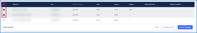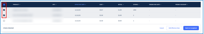 - Hover over a row and select Mark as Completed.