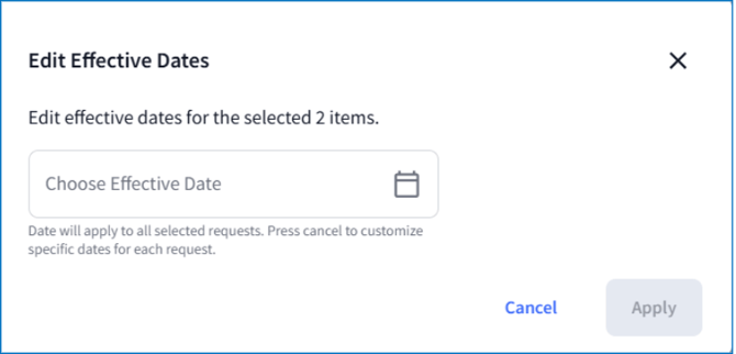 To edit the effective date for multiple requests: