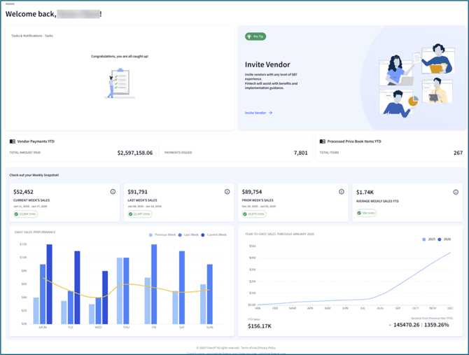 The SBT Retailer Portal Home tab will be the first page you see when logging into the portal. It features widgets that provide insight into account tasks, transactions, wholesale cost data, and more.