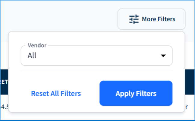 If you’d like to filter the table by vendor, select More Filters under the search bar: