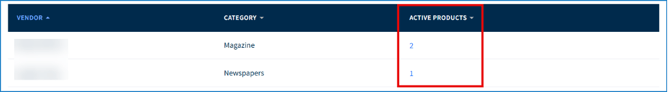 To view a store’s current vendor relationships, select a number from the Active Vendors column: