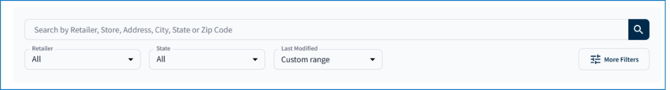 You can view a complete history of all stores - including data from previous years - by changing the default from 30 days to All. Also, use the search bar and other filters to find specific locations or filter by state, city, or zip code:
