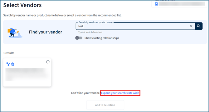 - Enter the vendor’s name into the search bar, click the magnifying glass or press Enter to populate search results, then click Expand your search statewide: