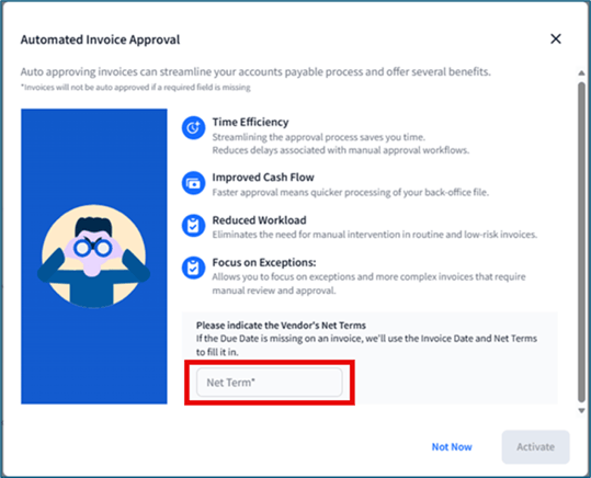 - Find the Automated Invoice Approval message, then click the Activate Now: