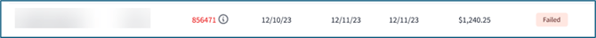 - Invoices > My Invoices - The invoice number will be red. Hover over the i icon or open the invoice to view failure details: