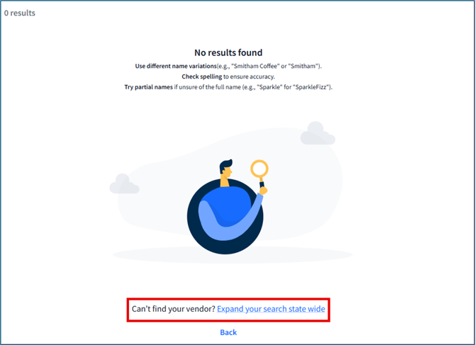 3. If the vendor doesn't populate after searching and has not been added to the location already, click on Expand your search statewide: