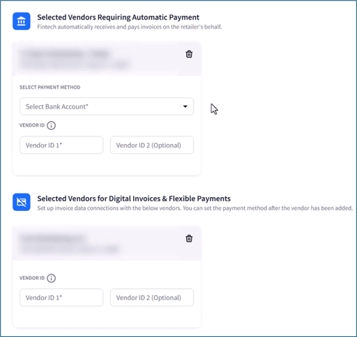 1. If any vendors selected require automatic payments (EFT), you can update your payment preferences on their profile after the relationship is live. Learn more here: Managing Current Vendors.